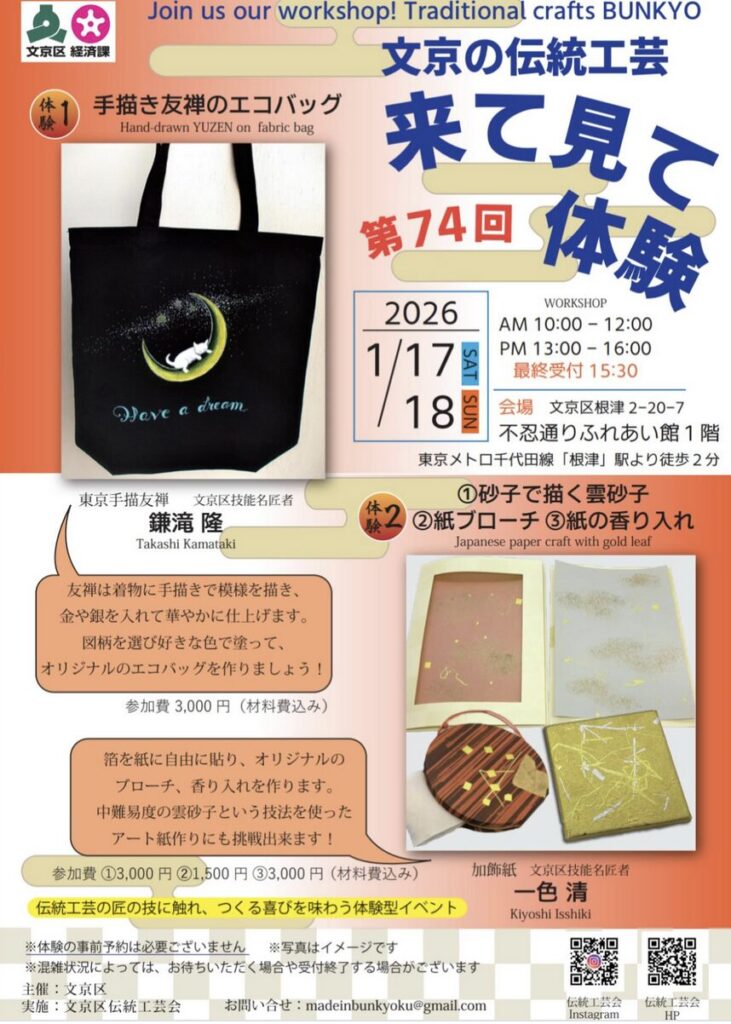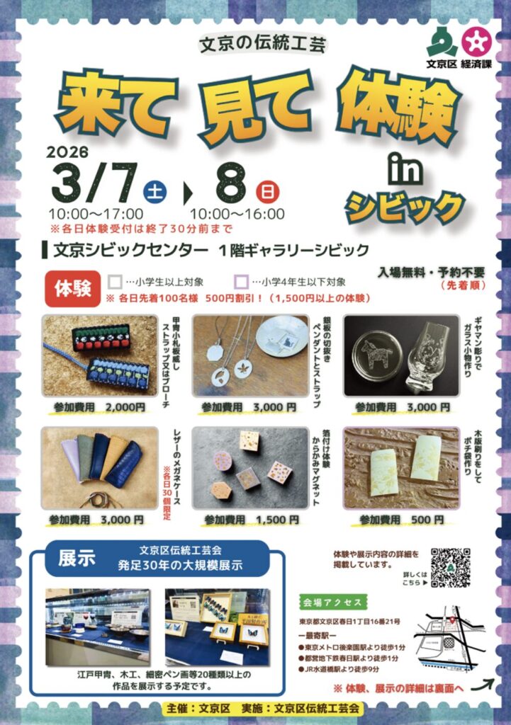 2026年3月開催「来て見て体験」文京の伝統工芸inシビックのお知らせ