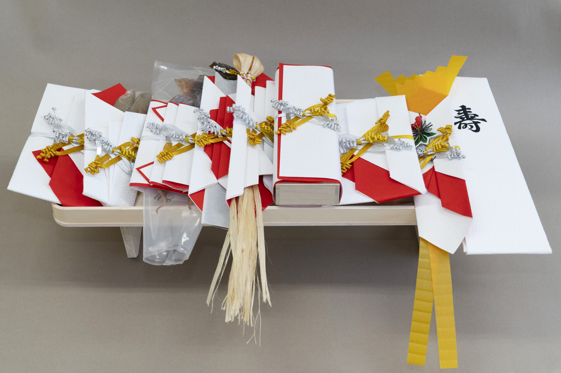 関東の正式な結納品です。結び方が伝統的な抱きあわじで統一されています。